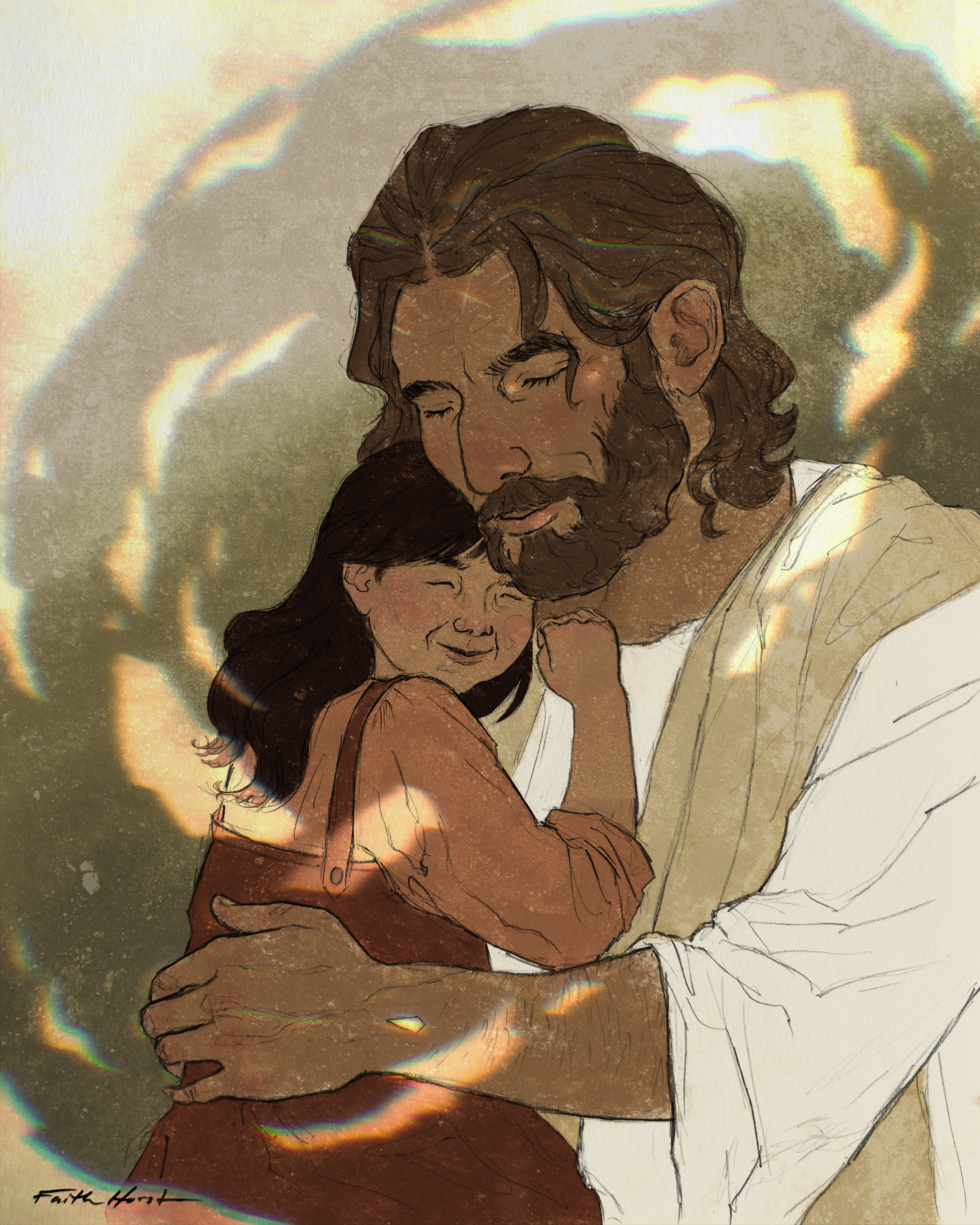 Although Kate is now an adult, she commissioned me to draw her as she truly is: a child, fully reliant on her Savior. It was pure joy to depict her in the warmth of His love!