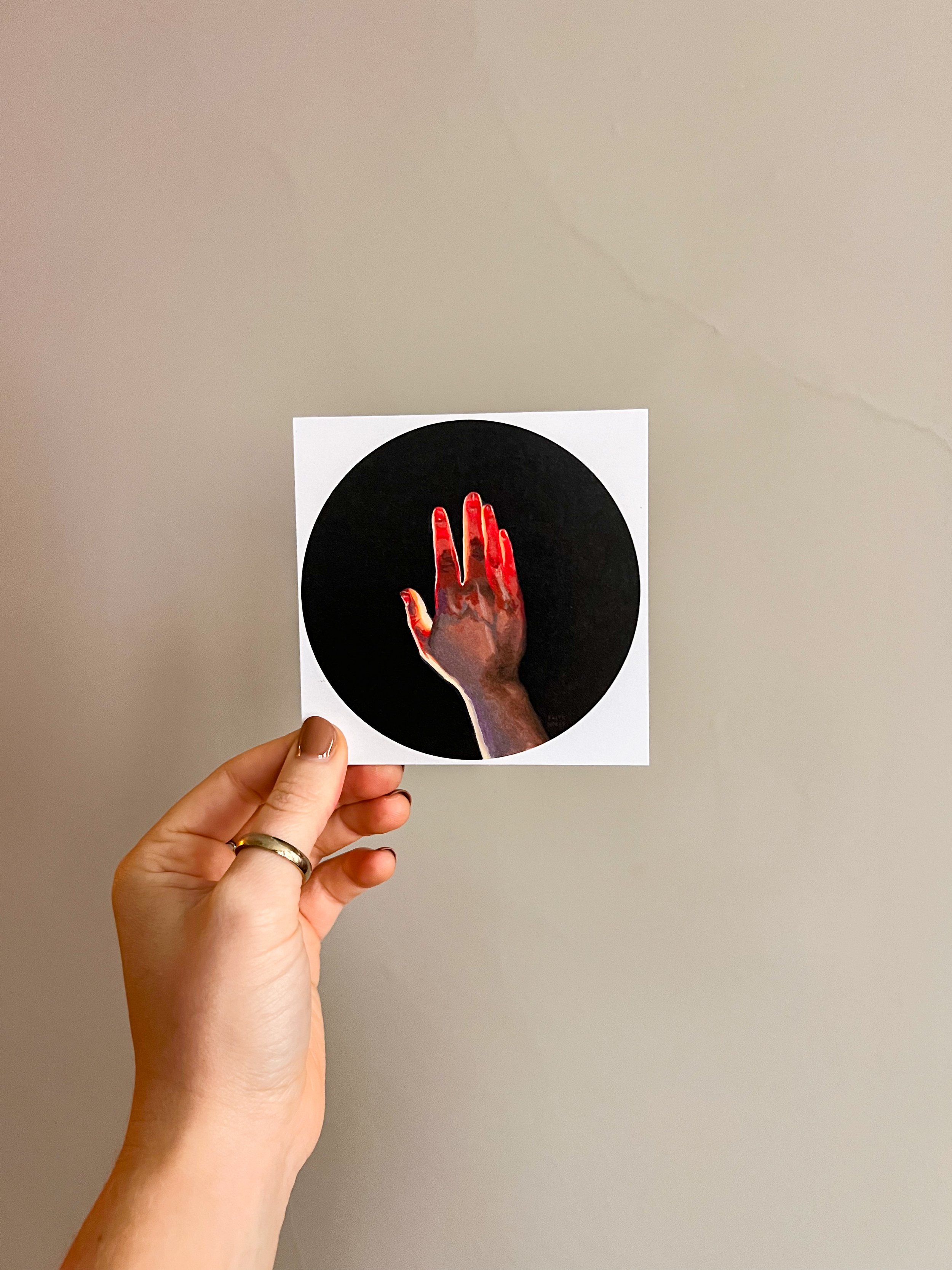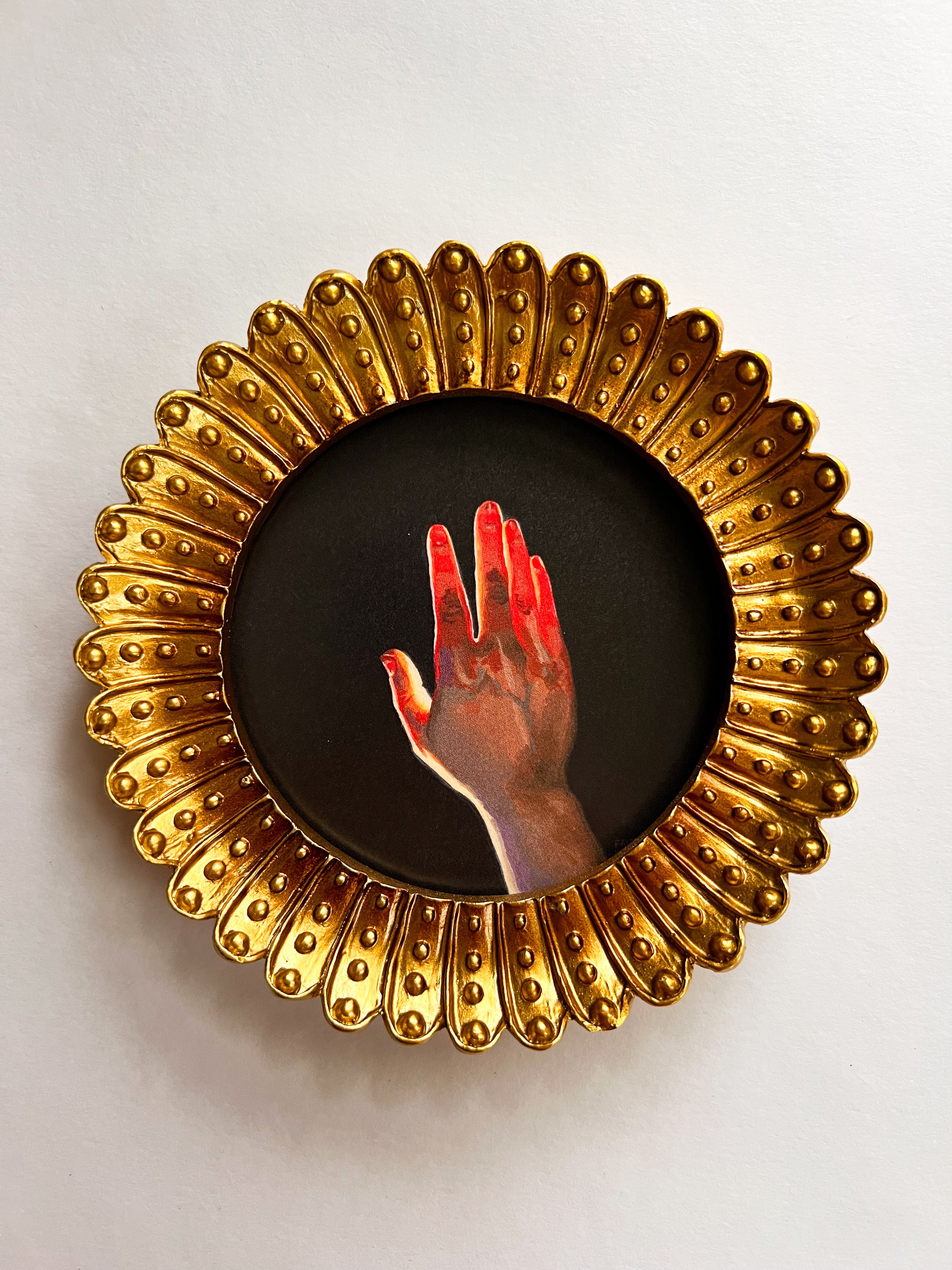 As I created this piece, I pondered how the light we are in dramatically affects the way we see things. A swarm of gnats? Ugly. A swarm of gnats caught in the golden light of the sunset? Beautiful flying glitter. Something that appears ugly can become stunningly beautiful in the right light. Transmitted light through our skin causes our colors to become brighter, like the brilliant reds and oranges of this painting.